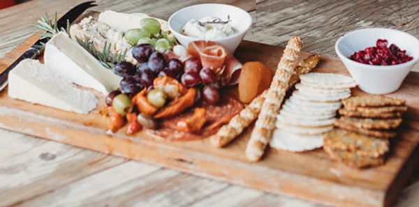Enjoy a gourmet selection of local cheeses, charcuterie, pickled veggies, fresh & dried fruit, olives and crackers, beautifully presented on a grazing board.